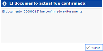 Finalmente, se mostrará un cuadro notificando la Confirmación del Documento