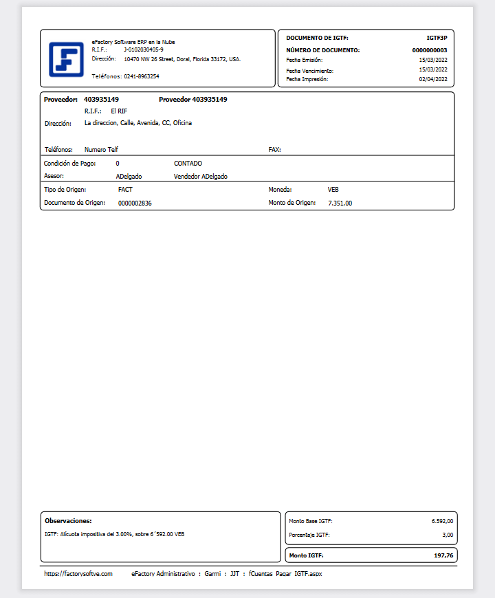 se mostrará el Formato de IGTF, el cual muestra la información del IGTF aplicado.