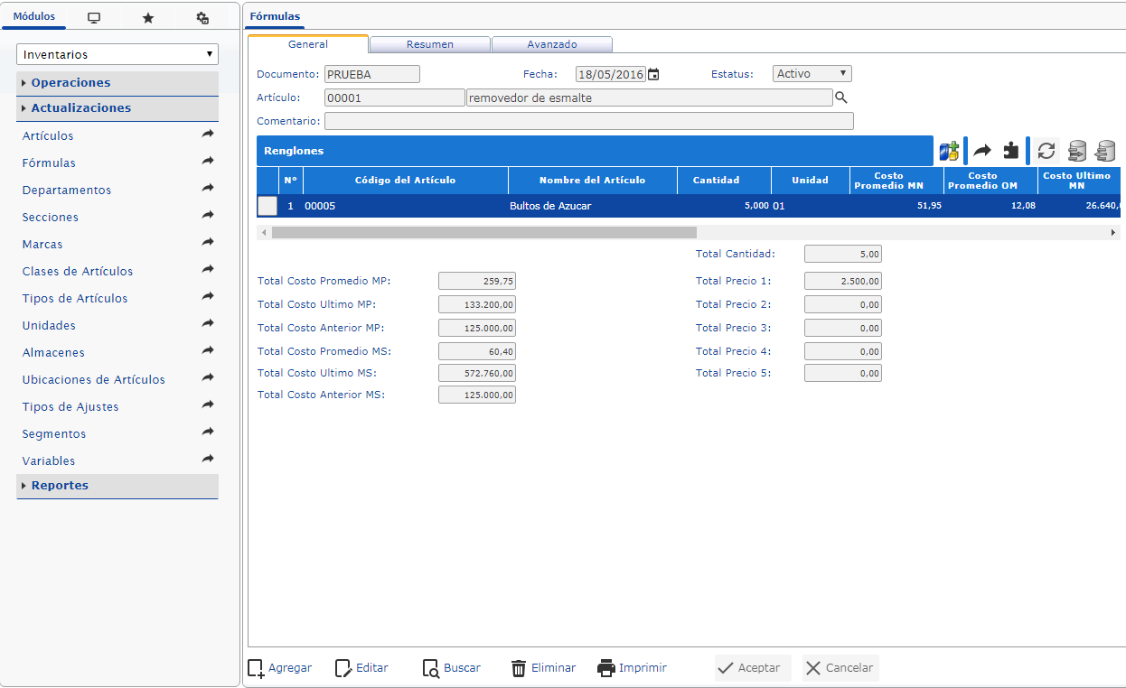 Te permite mantener el control formal de los inventarios en múltiples almacenes, de los costos y un seguimiento pormenorizado de las existencias.